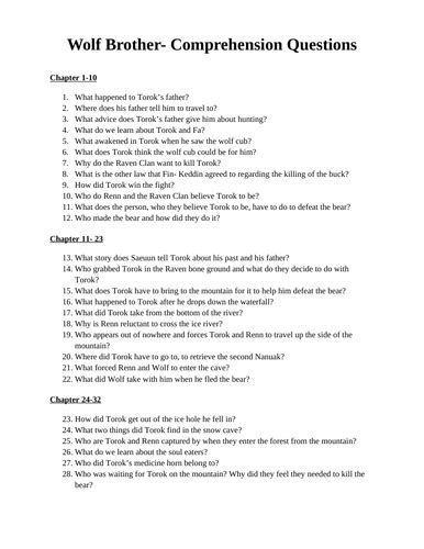 Read wolf brother comprehension questions Audio CD Internet Archive