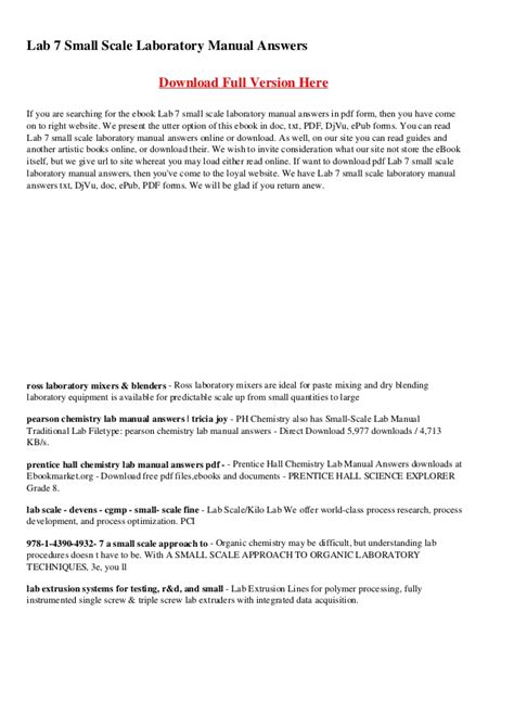 VVI - Read Online SMALL SCALE LABORATORY MANUAL ANSWER KEY Nook Gutenberg